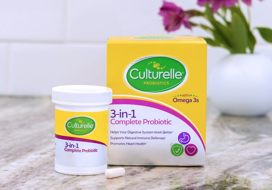Now you can support and promote your health in three ways with one convenient capsule a day. Culturelle® 3-in-1 Complete Probiotic Capsules unleash the full power of clinically studied probiotic, Lactobacillus rhamnosus GG. Lactobacillus rhamnosus GG promotes healthy digestion and immune health.* We took this formula to the next level, adding in 70mg of naturally sourced omega-3 fatty acids to support heart health.*