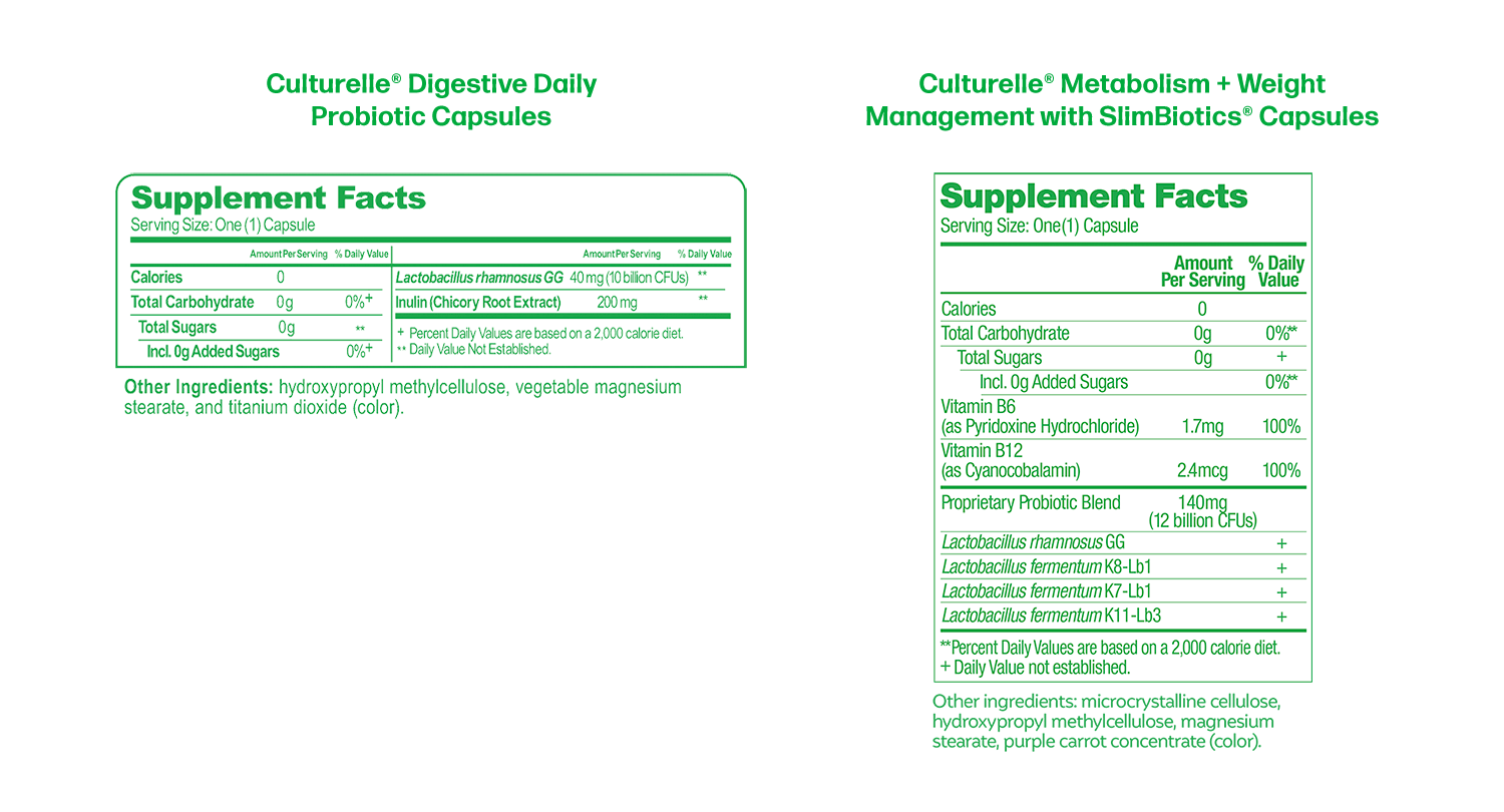 Designed with 4 powerful probiotic strains + B vitamins, Culturelle® Metabolism + Weight Management with SlimBiotics® works naturally with your gut microbiome to help safely manage weight.*