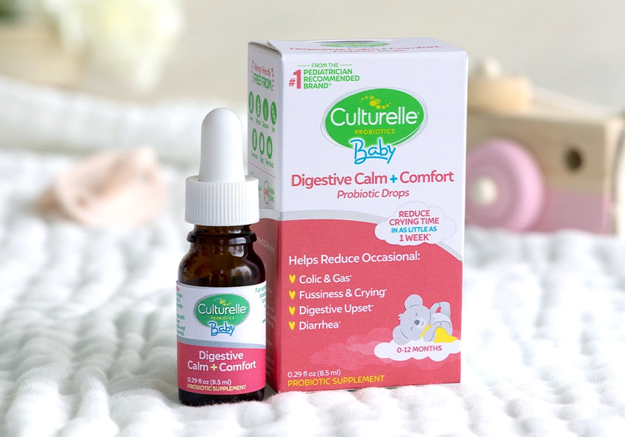 As a parent, an inconsolable infant can leave you feeling helpless. Too often, tummy troubles are the source of this occasional distress. Probiotic drops, like Culturelle® Baby Digestive Calm + Comfort Probiotics Drops, help support baby’s health by boosting digestion, alleviating occasional digestive upset, and reducing the associated fussiness and crying to help put your baby—and you—at ease.* Developing a healthy microbiome, immune system and digestive health is important for baby.