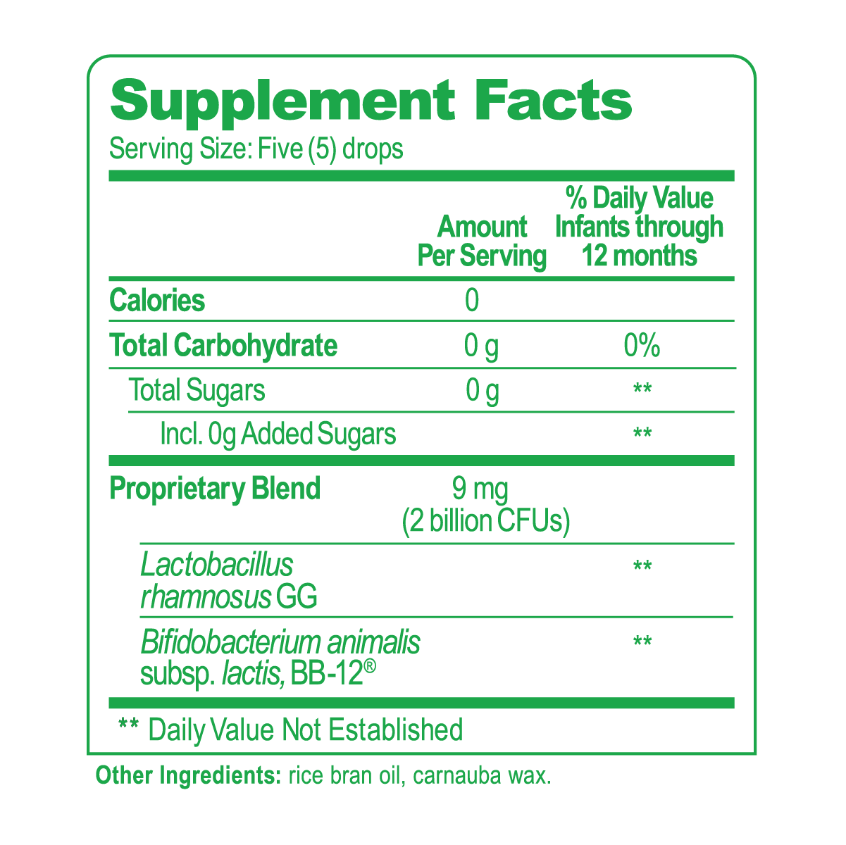 Culturelle® Baby Digestive Calm + Comfort Drops are free of any dyes or artificial sweeteners.