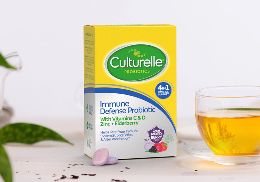 Culturelle® Kids Immune Defense Probiotic Chewables are a tasty mixed berry flavor kids love that leverages a powerful blend containing scientifically proven probiotics plus Vitamins D & C and Zinc.*