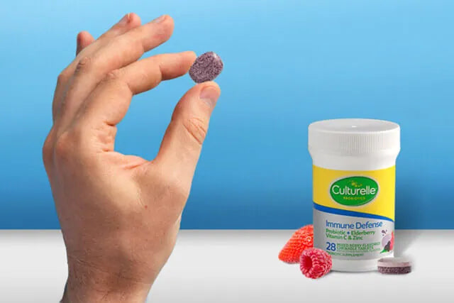 Culturelle® Immune Defense Chewables are a probiotic chewable which provides 4-in-1 support with a combination of the clinically studied probiotic strain Lactobacillus rhamnosus GG, Vitamin C, Vitamin D and zinc. This combination helps promote both gut and immune health.