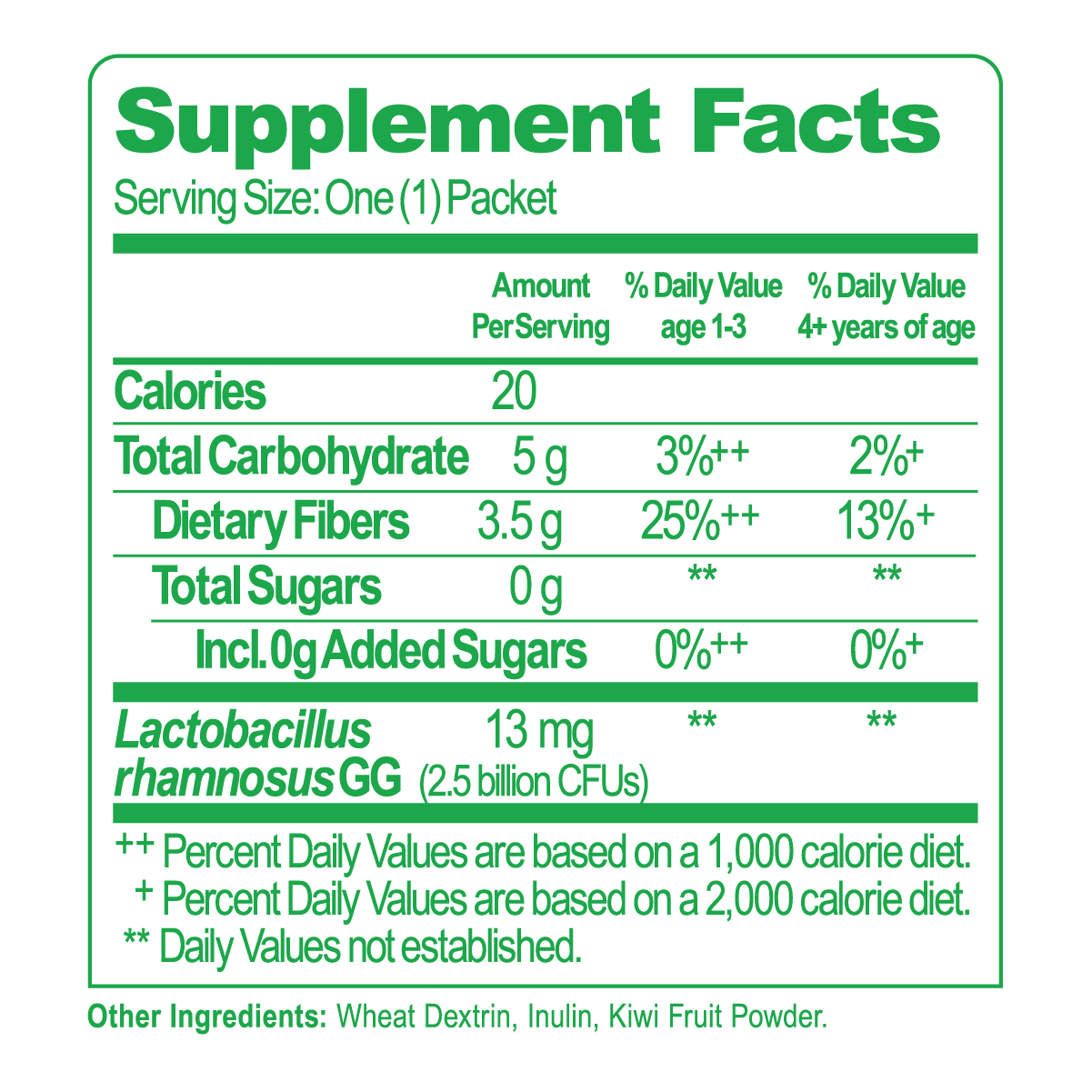 Culturelle® Kids Probiotic + Fiber Regularity Packets are made with clean, safe and effective ingredients that are vegetarian, non-GMO and gluten-free▲. So, you can trust your gut daily to Culturelle®.
